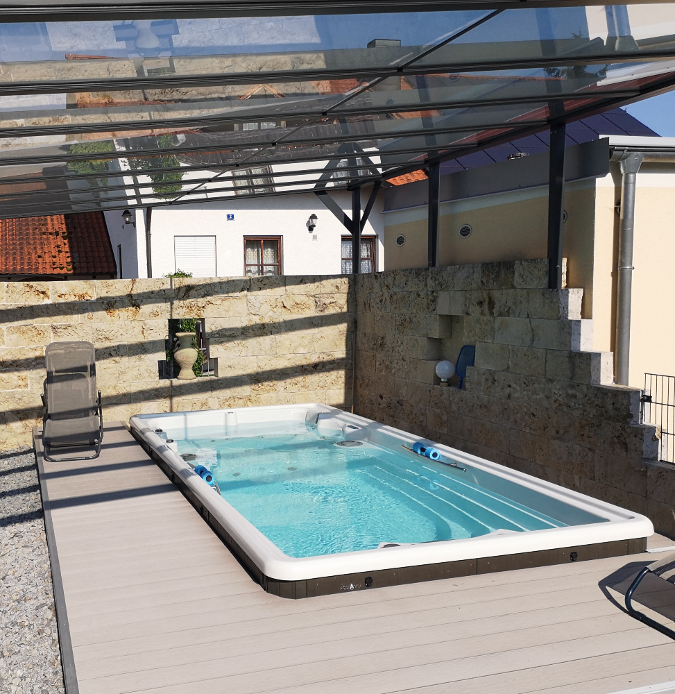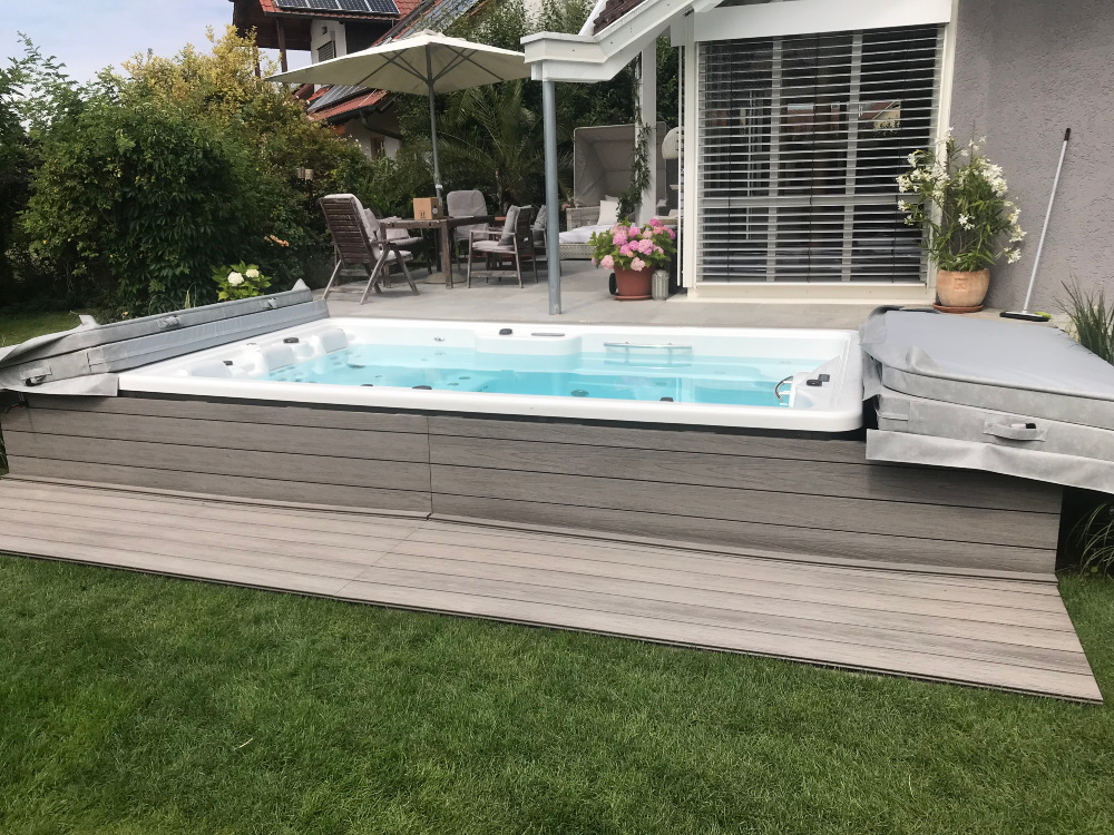 Nirgendwo sonst erleben Sie diese beiden Elemente so hautnah wie in einem Whirlpool. Ein Whirlpool ist eine Investition in die Gesundheit und Lebensfreude. Eine Massage mit warmen Wasser wirkt belebend auf Ihre gesamte Zirkulation: die Körpertemperatur erhöht sich und die Blutgefäße werden erweitert. Dadurch können Überanstrengte, schmerzende Muskeln mit Sauerstoff und Nährstoffen versorgt werden, die Entschlackung des Körpers wird angeregt. Durch den natürlichen Auftrieb im Wasser verringert sich Ihr Körpergewicht um rund 90%: das verleiht Ihnen ein Gefühl der Schwerelosigkeit, Wirbelsäule und Gelenke werden entlastet und Ihr Körper kann sich entspannen. Stress verfliegt, der Blutdruck sinkt. Sie haben die Auswahl: Whirlpools für 1 bis 7 Personen, die Sie im eigenen Heim aufstellen können oder gewerblich nutzen können.